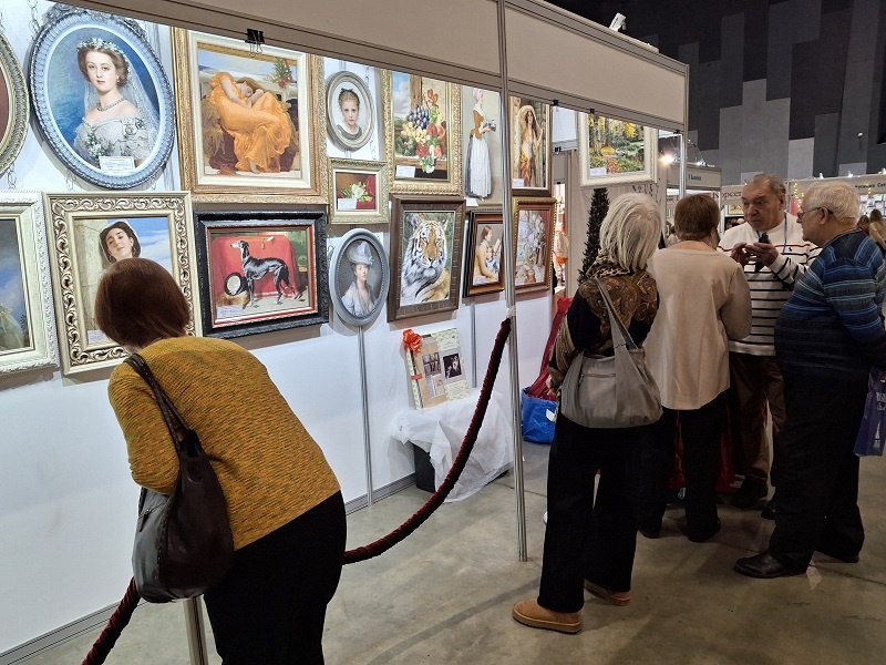 как выглядит наш набор и что такое оптимизаторы вышивки: У нас были интересные интервью с вышивальщицами И прекрасная беседа с Татьяной Викторовной Лозовской (смотрите, даже в своих нарядах мы с ней единомышленники :)) (все интервью вы увидите в нашем отчетном ролике) Галина принесла абсолютно готовый Яркий розовый букет! Надежда вышила для себя половину красавца-мужчины В библиотеке на среднего размера 20ct