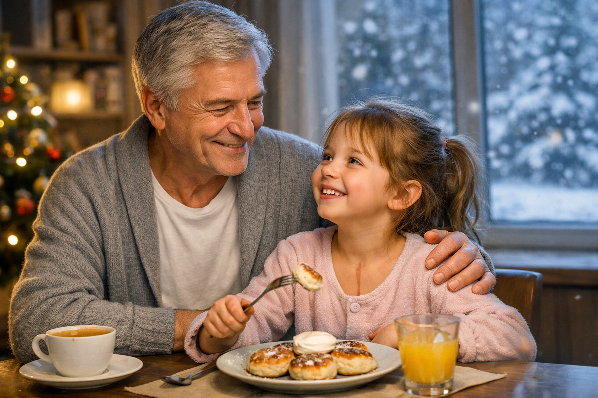 — Деда, а ты чего улыбаешься? — спросила внучка, уплетая сырник.