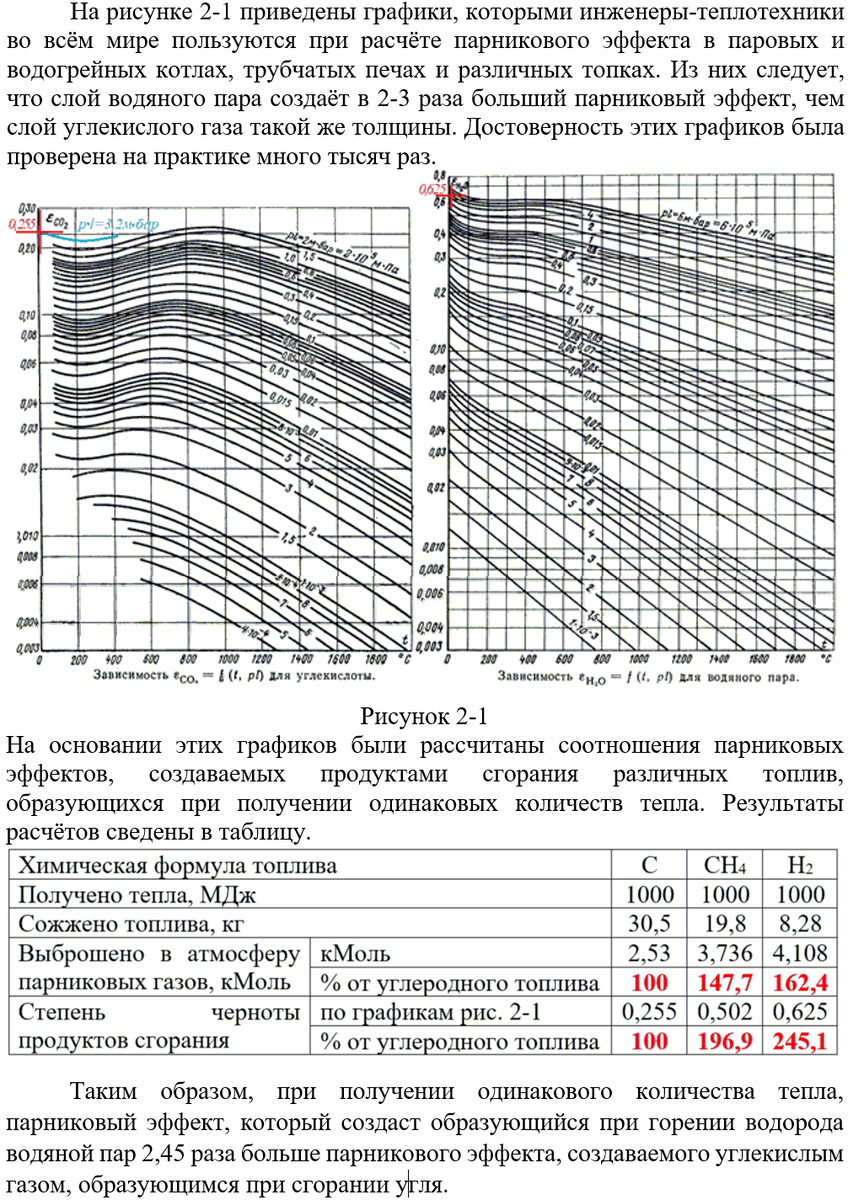 Парниковый эффект, создаваемый в атмосфере продуктами сгорания углеводородных топлив тем больше, чем больше в топливе содержится водорода (см. прилагаемую таблицу и комментарий к ней).