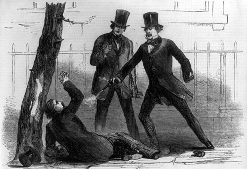 27 февраля 1859 года на площади Лафайет, прямо напротив Белого дома, конгрессмен из Нью-Йорка Дэниел Сиклс решил, что семейные вопросы требуют немедленного и огнестрельного решения. Его соперником стал Филип Бартон Ки — окружной прокурор Вашингтона и, по совместительству, сын автора американского гимна. Причина конфликта стара как мир: Сиклс узнал о связи Ки со своей молодой женой Терезой. Встретив Ки на улице, он не стал писать гневные письма. По свидетельствам, крикнул: «Ты опозорил мой дом — ты должен умереть!» Затем вытащил револьвер и выстрелил. Первая пуля попала в пах. За ней последовали ещё две. Ки упал и вскоре скончался. Сиклс сдался властям, размахивая дымящимся оружием и поинтересовавшись, жив ли «мерзавец». Америка взорвалась заголовками. Суд стал сенсацией. Защита выбрала необычную стратегию: Сиклс якобы находился в состоянии временной невменяемости. Это был первый в истории США случай, когда такая линия защиты сработала. Плюс прозвучала идея «неписаного закона»: муж в