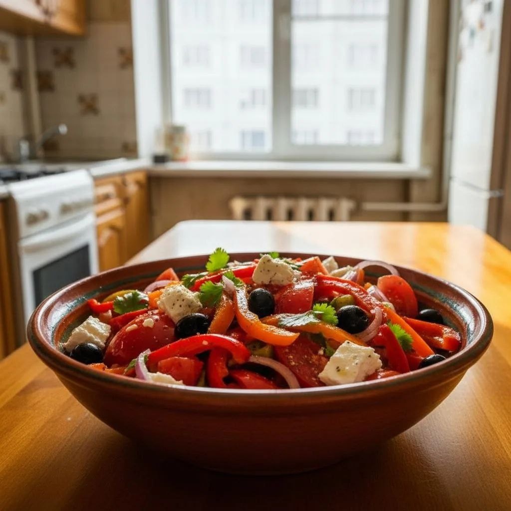 Если поедете на шашлыки, обязательно сохраните этот рецепт — салат отлично подойдёт к мясу! 🥩😍 🙌 Для салата возьмите: 1️⃣ 🌿 Кинза 2️⃣ 🫒 Маслины 3️⃣ 🧅 Красный лук 4️⃣ 🍅 Сочный помидор — 1 шт. 5️⃣ 🫑 Болгарские красные перцы — 3 шт. 6️⃣ 🧂 Соль, перец (для вкуса) 7️⃣ 🛢 Масло (оливковое или любое для заправки) 8️⃣ 🍋 Лимон (сок для заправки) 9️⃣ 🧀 Брынза или творожный сыр (по желанию, можно не добавлять для постного варианта) 👏 Как готовить: 1️⃣ Основное — запечь перцы: вымойте их, выложите в форму, добавьте соль, перец, масло. Запекайте в духовке 40 минут при 200°C. 2️⃣ Готовые перцы сложите в миску и накройте плёнкой на 15 минут — кожура снимется легко! 3️⃣ Очищенные перцы нарежьте соломкой. 4️⃣ Помидор порежьте крупными кусочками. 5️⃣ Маслины, лук и кинзу измельчите по вкусу. 6️⃣ В салатнике смешайте все ингредиенты, добавьте сыр (если используете). 7️⃣ Заправьте маслом и лимонным соком, посолите и поперчите по вкусу. 8️⃣ Подавайте салат к стейку, шашлыкам (идеален к барани