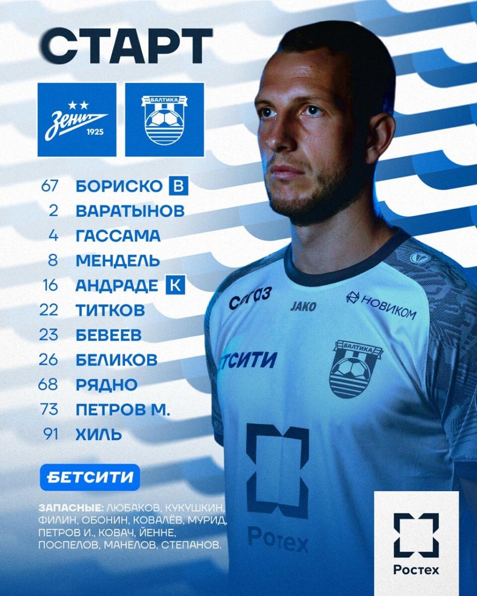 Стали известны стартовые составы "Зенита" и "Балтики" на матч РПЛ