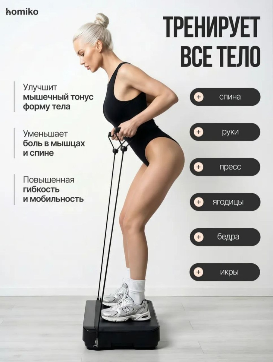 Виброплатформа Homiko — это современный домашний тренажёр, который сочетает компактность, широкий выбор программ и дополнительные функции.
