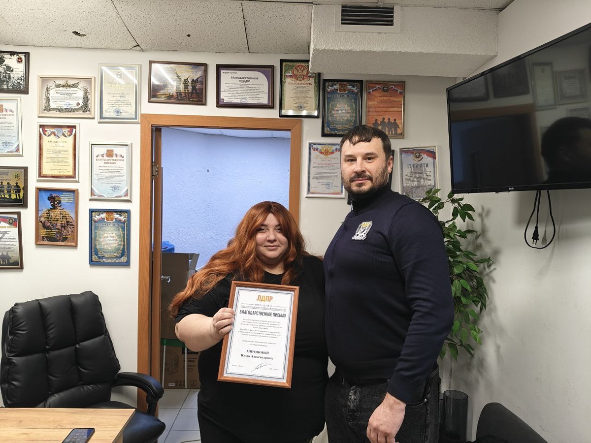 Сегодня руководитель Псковской молодежной организации ЛДПР Владимир Ефимов вручил благодарственное письмо от Председателя ЛДПР Леонида Слуцкого руководителю волонтерского движения «Русская медведица» Юлии Мироновой. 💬«Мы искренне признательны волонтерам за значительный вклад в поддержку наших солдат, оказывая необходимую материальную помощь и проявляя глубокое чувство сопричастности и неравнодушия», — подчеркнул Владимир Ефимов. Такие встречи подчеркивают важную роль добровольцев в укреплении гражданского общества и поддержке социально значимых проектов. Волонтёрская деятельность демонстрирует высокие моральные качества участников и служит примером активного участия граждан в жизни своего региона и страны в целом. 🇷🇺Читайте нас в MAX