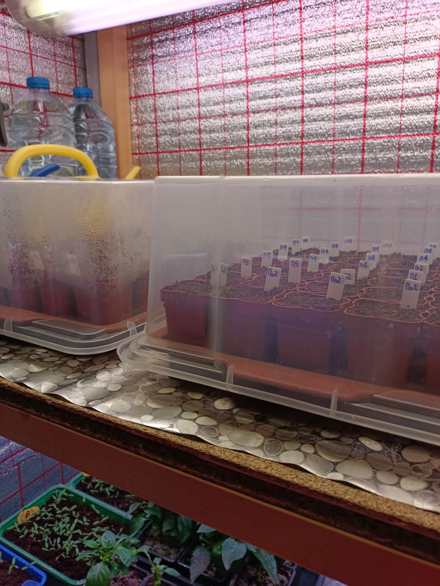 Так сейчас кажется моему телу. Нежит где-то боль в спине. Весь день на ногах. Постоянно сгибаюсь. Наклоняюсь. Периодически присаживаюсь. Семян много. Семьдесят индивидуальных горшочков. И шесть кассет по двенадцать ячеек. Всего сто сорок два семечка. Аккуратно пересадил их из влажных салфеток. Из чашек Петри. Пинцетом, конечно. Это только часть перцев. С цветами разобрался. Новые ещё подумаю.