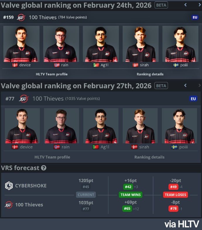 ❗️ 100 Thieves стремительно поднимаются в рейтинге VRS