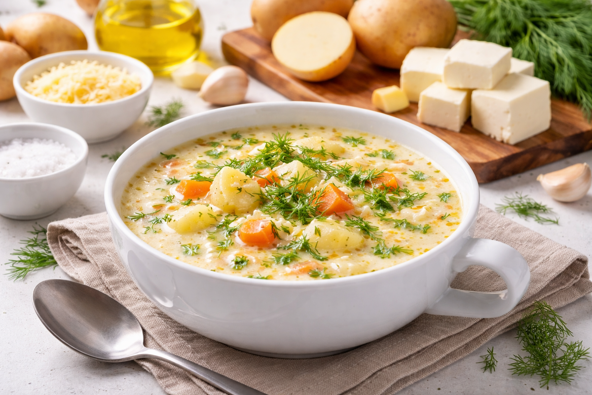 Есть супы, которые спасают вечер: пару простых продуктов, 20 минут на плите - и дома сразу становится теплее. Этот картофельный суп с плавленым сыром получается нежным, тянущимся, с ароматом укропа и мягкой овощной сладостью. Делюсь вариантом, который у меня стабильно выходит с первого раза.