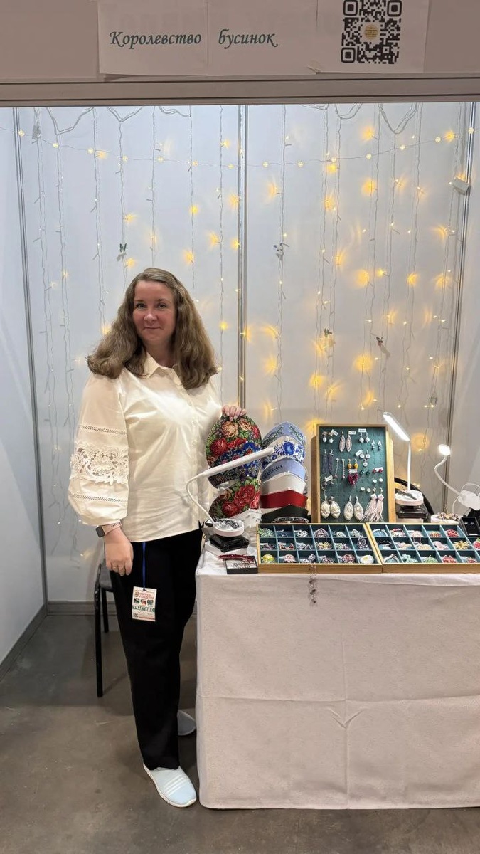 И с коллегами. А сегодня эти чудесные серьги - кокошники нашли свою хозяйку. Девушка купила сестре в подарок. Сестра стояла рядом. И она так рада была, когда сестра предложила: "А давай, я их тебе куплю на 8 марта! " Это было так мило. Именно для таких моментов и историй я создаю свои украшения. Надеюсь, в скором времени их будет ещё больше. А я жду вас завтра на Формуле Рукоделия на своём стенде З2.7 с 10 до 19 часов. #королевствобусинок #формуларукоделия #формуларукоделия_весна2026 #украшенияручнойработы #брошь #кокошникручнойработы