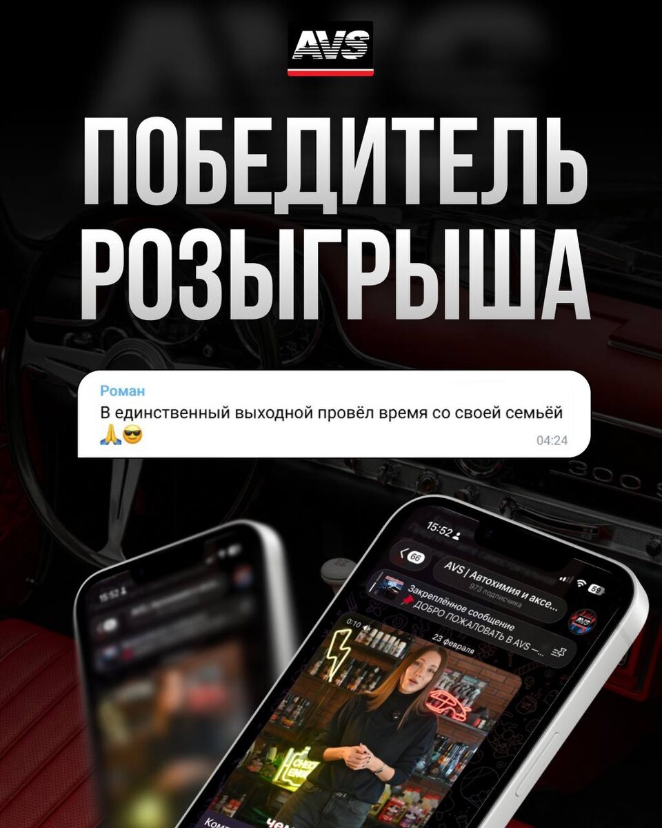 ! 🎁Сегодня 27 число, и мы рады объявить победителя нашего конкурса. Спасибо каждому, кто принял участие! 📖 Было невероятно приятно читать ваши комментарии: кто-то поделился отличным чувством юмора, кто-то открыл свою душу, а некоторые даже смогли превратить погоду в источник вдохновения 💡 ➡️Особое внимание привлек комментарий от Романа, подчеркнувший важность семейных ценностей и тёплых моментов, проведенных вместе с близкими людьми. Именно этот участник становится обладателем ценного подарка — полного набора автохимии, который позволит машине всегда выглядеть идеально свежей и ухоженной. Совсем скоро с вами свяжется наш менеджер. ❤️Мы благодарим всех участников и хотим напомнить: впереди вас ждёт ещё немало увлекательных конкурсов и сюрпризов. Следите за нашими обновлениями и оставайтесь с нами!