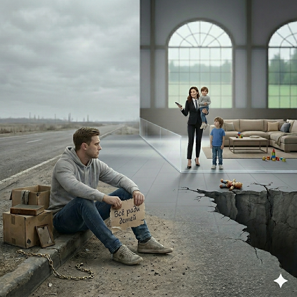 Когда мужчина решает уйти, он часто готов оставить «всё детям». Но я здесь для того, чтобы напомнить: между «обеспечить детей» и «стать спонсором новой жизни бывшей жены, оставшись на обочине» — огромная пропасть, на которой многие ломают себе жизнь. Раздел недвижимости после развода — это не про квадратные метры. Это про то, кто останется хозяином своей жизни, а кто отправится снимать комнату в промзоне, отдавая за неё последние честно заработанные. 1. «Дети привыкли к этим обоям» (Классика манипуляции) Самый популярный прием — прикрываться интересами ребенка как живым щитом. • Логика женщины: «Я не могу съехать из этой трехкомнатной квартиры, потому что у сына тут школа, кружок робототехники и любимый вид из окна. А ты — предатель, ты и в гараже перезимуешь». • Реальность: Она просто хочет единолично пользоваться всей квартирой, не выплачивая тебе законную долю. Ребенок здесь — юридическая заглушка, чтобы заблокировать справедливый раздел имущества. 2. Жилищные алименты: Съем за твой
