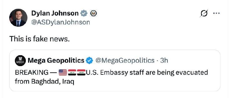 State Department calls ‘FAKE NEWS’ on claim of US embassy staff being evacuated from Iraq