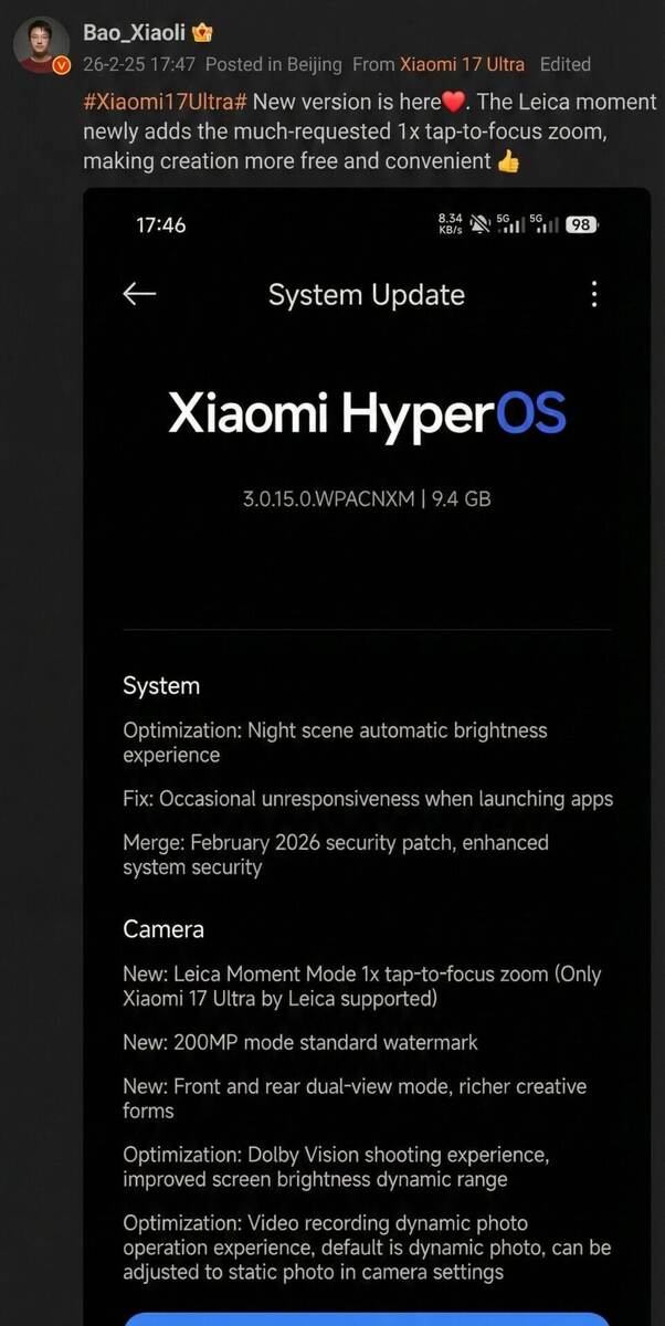 Что нового в HyperOS 3.0.15.0 для Xiaomi 17 Ultra