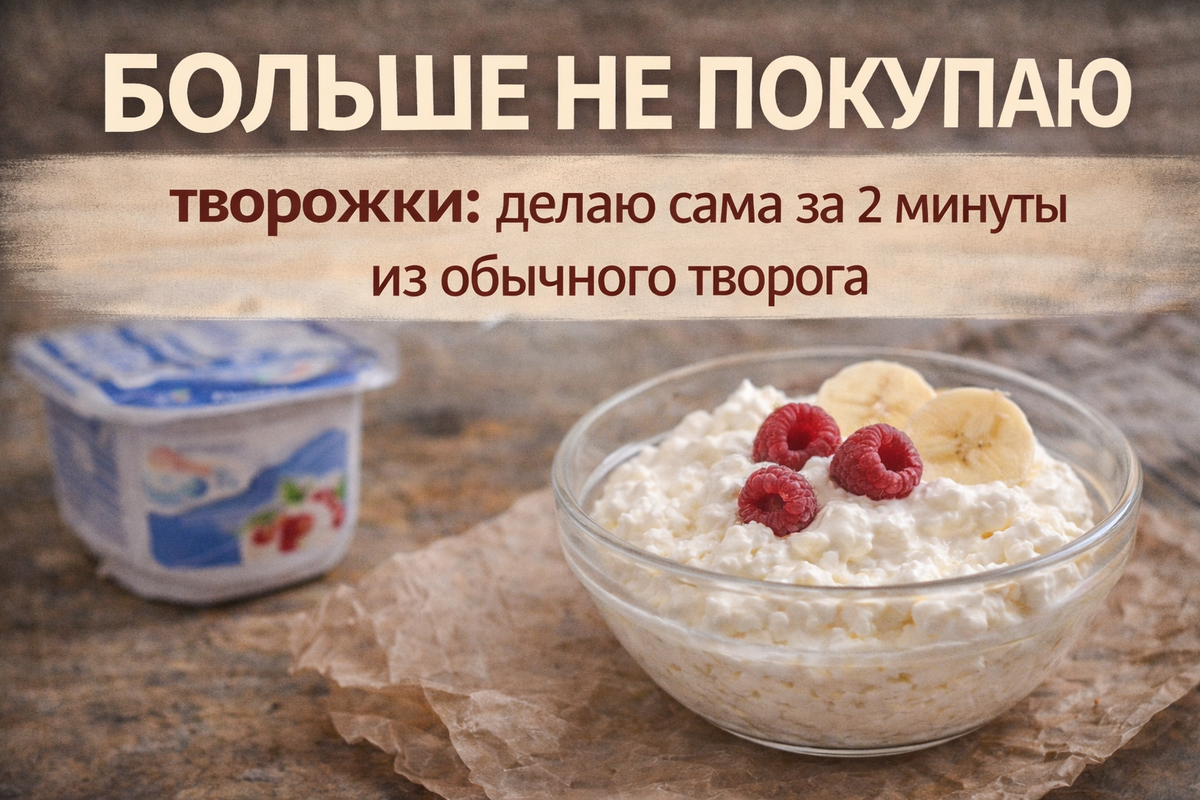 Больше не покупаю творожки: делаю сама за 2 минуты из обычного творога Сладкие творожки давно стали привычным завтраком. Их удобно открыть, не нужно готовить, вкус всегда одинаковый. Но со временем многие замечают, что после такого завтрака сытость проходит быстро, а сладость кажется слишком сильной. Оказалось, что домашний вариант готовится буквально за пару минут и по вкусу получается мягче и натуральнее. При этом можно менять консистенцию и сладость под себя. Главное правило — правильно подготовить творог. Лучше всего подходит творог средней влажности 5–9%. Слишком сухой даст зернистую структуру, а слишком влажный сделает массу жидкой. Если творог крупнозернистый, его достаточно размять вилкой или пробить блендером 20–30 секунд. В миску выложи творог и добавь сметану. Разотри ложкой до кремовой текстуры. Если хочется полностью гладкой массы, используй блендер. Добавь мёд и ваниль. Перемешай. Фрукты можно вмешать внутрь или положить сверху. Банан делает массу более сладкой и мягкой б