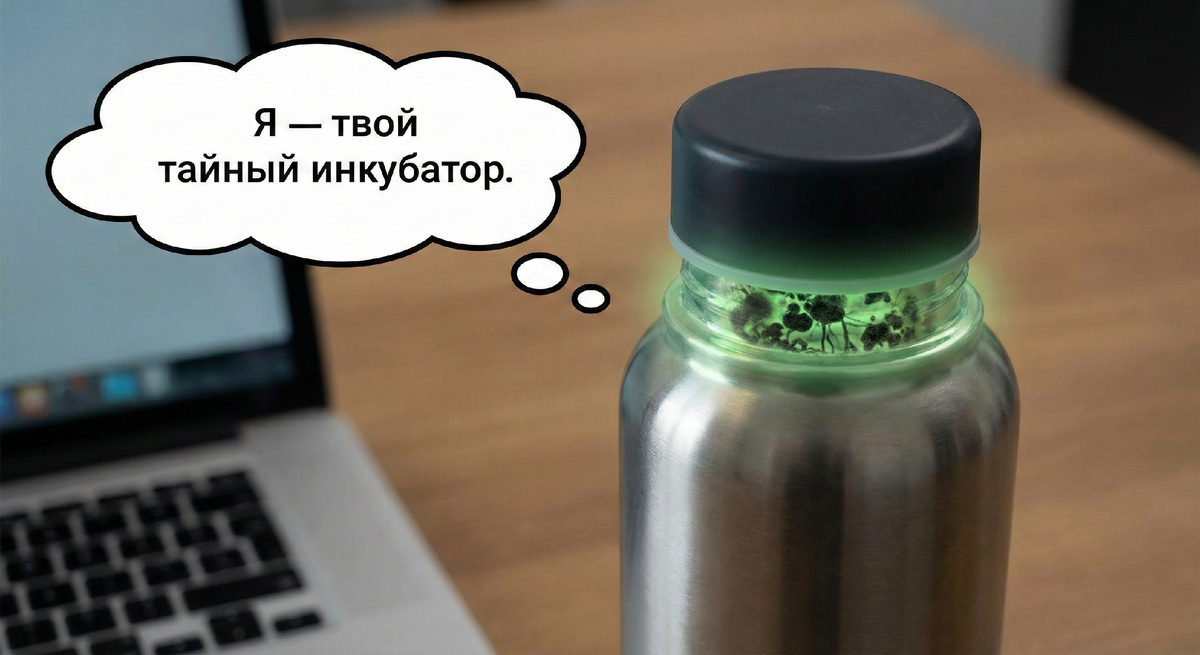 Каждый раз, когда вода проходит через мою крышку или трубочку, она смывает микроскопическую часть этой биопленки и спор плесени прямо тебе в рот. Это не вызовет у тебя мгновенного отравления, с которым увозят на скорой. Нет, плесень действует хитрее. Она устраивает тебе хроническую, медленную интоксикацию.