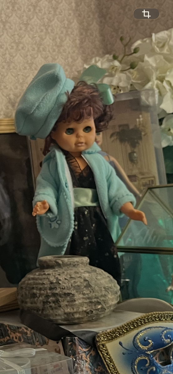 Куколка эта – самая настоящая игровая, пережила со мной и болезни, и лечение, я рисовала на ней раны и "разрезы хирурга", когда играла в больницу. Я ее мыла, сушила, причесывала, кутала зимой, гуляла с ней, но всё-таки старалась делать все это бережно. И куколка вместе с аутфитом до сих пор сохранились в очень неплохом состоянии.