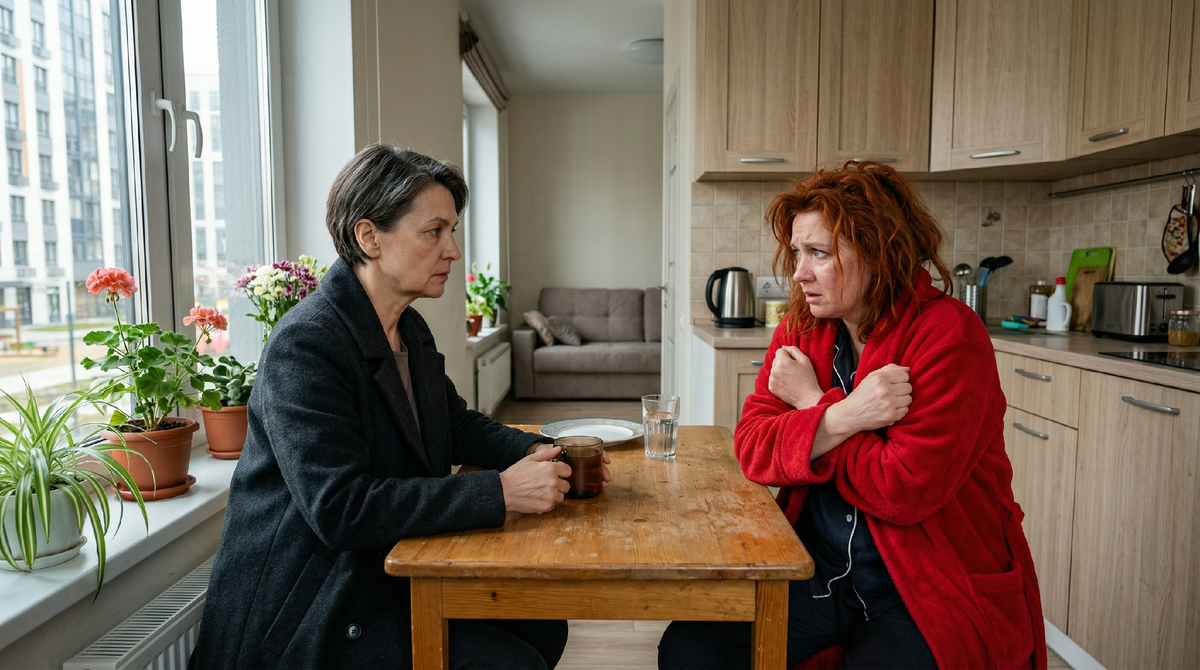 Светлана медленно убрала руки с локтей и положила их на стол. Пальцы легли неровно, чуть растопыренные, будто она пыталась удержаться за столешницу. Лицо стало серым, неподвижным. Она поняла: ей купили жилье на чужие деньги. И теперь она может его потерять.