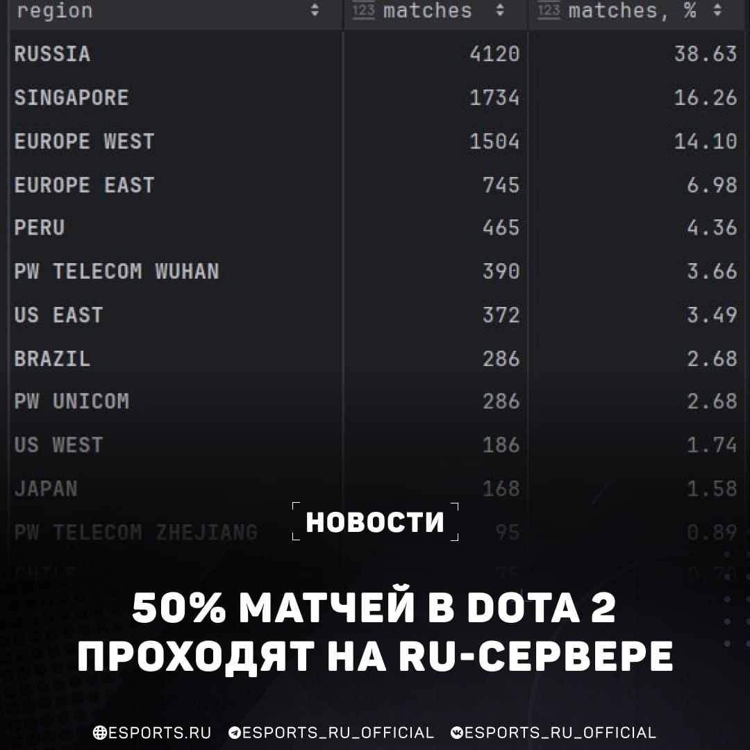 😳 Почти каждый второй матч в Dota 2 — на русском сервере