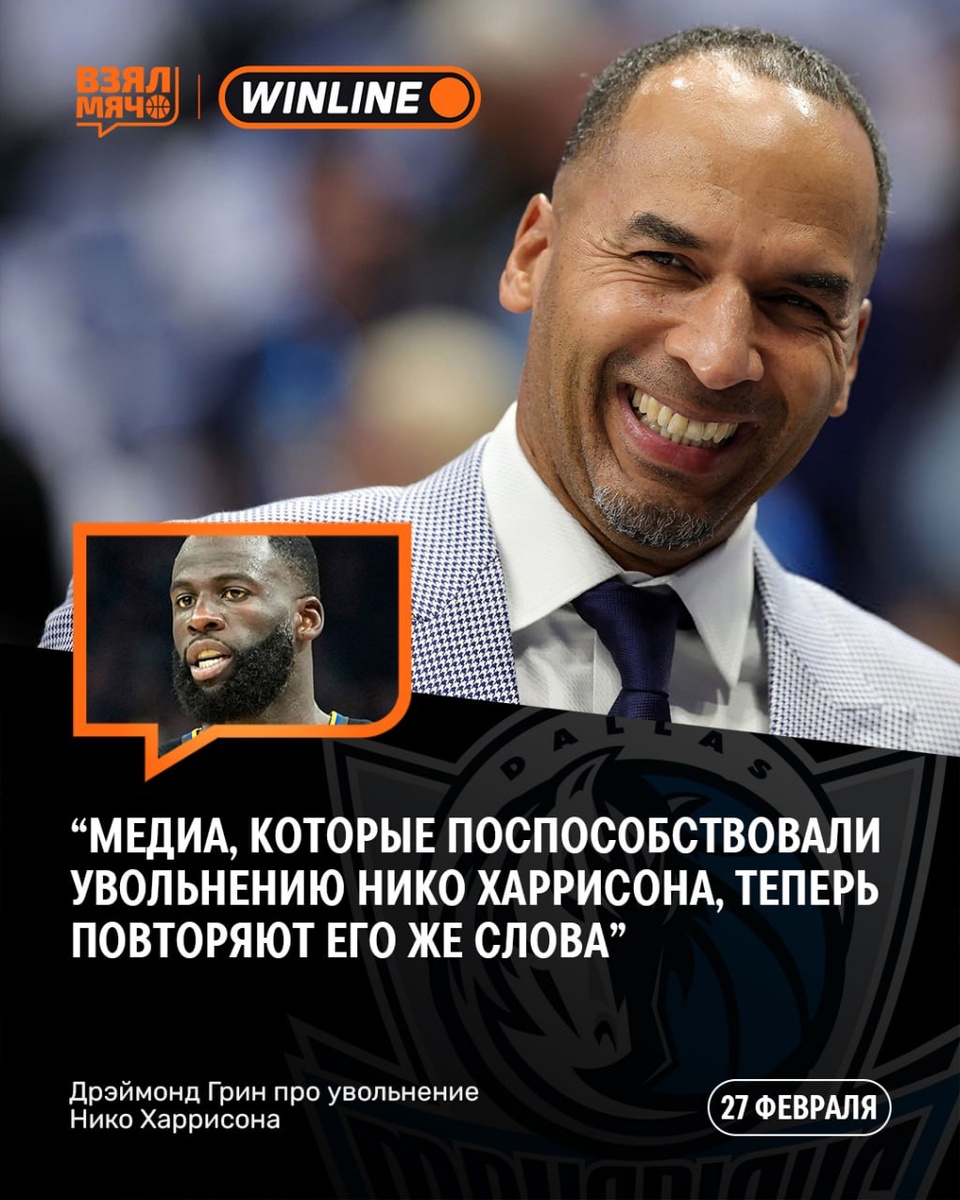 ? Харрисон был уволен осенью после неудачного старта «Далласа». 🗣 «Куча хейта обрушилось на Нико за его аргументы. Когда он он обменял Луку, все сказали, что он сумасшедший. Теперь, когда я включаю телевизор, вижу, как медиа, которые поспособствовали его увольнению, повторяют его же слова. Никто перед ним не извинился. Это все не имеет никакого отношения к Дончичу, только к медиа и Харрисону», — поделился Дрэймонд Грин на своём подкасте. 🏀 ПОДПИШИСЬ — ЗДЕСЬ ЖИВЁТ БАСКЕТБОЛ!