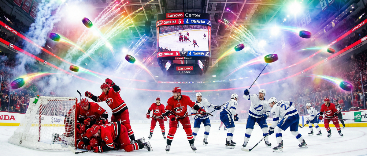 Хозяева стартовали ураганно - три года за первые 7 минут. Тампа дважды отыгрывалась, сравняла 4:4, но Себастьян Ахо забил победный гол в большинстве.