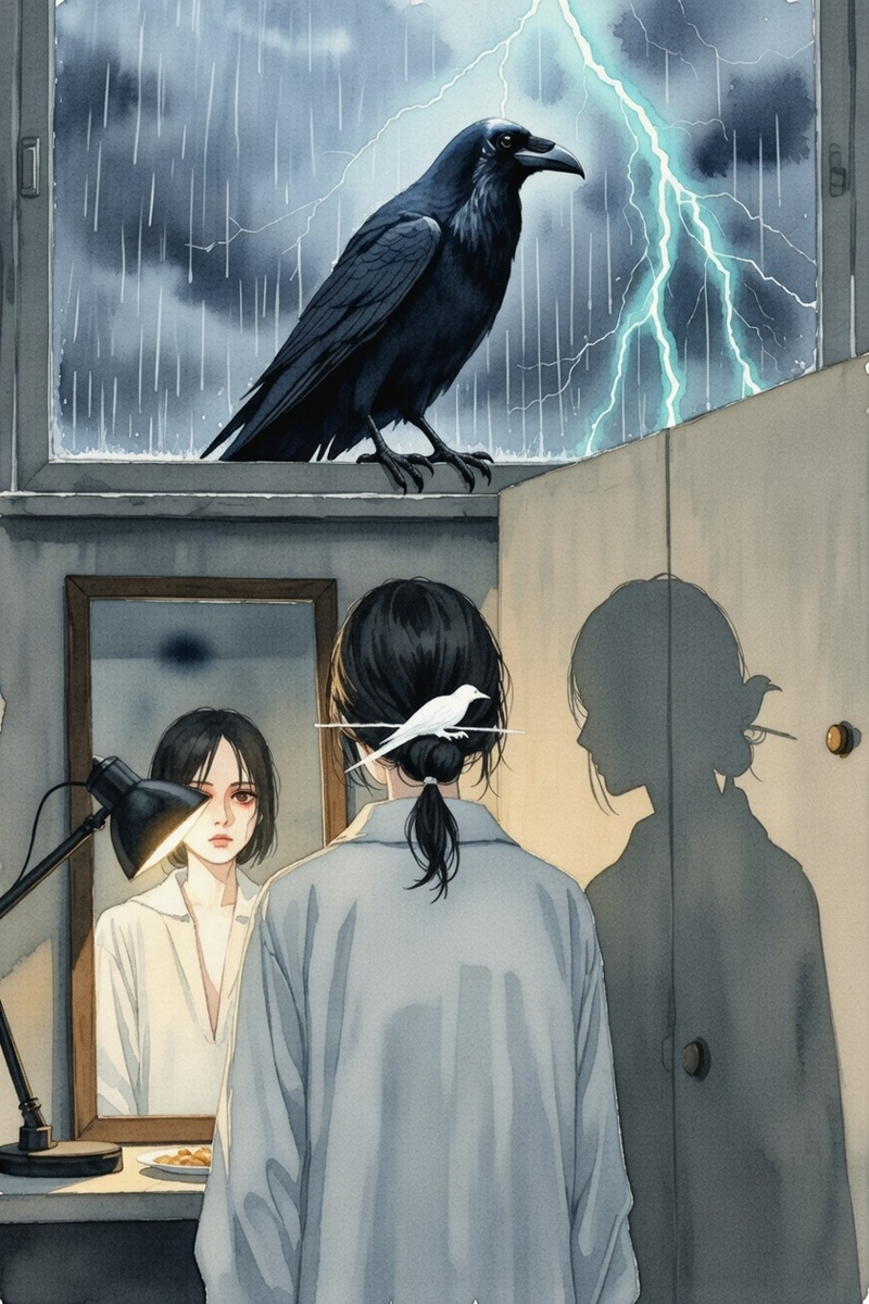 Она обернулась. На мокром от дождя подоконнике, снаружи, сидел ворон. Не обычная городская ворона, а крупная, глянцево-чёрная птица. И он смотрел прямо на неё, не мигая. Его клюв был чуть приоткрыт, словно он собирался каркнуть. Но звука не было. Только пронзительный взгляд, напоминающий человеческий. Птица, казалось, готовилась что-то сказать.