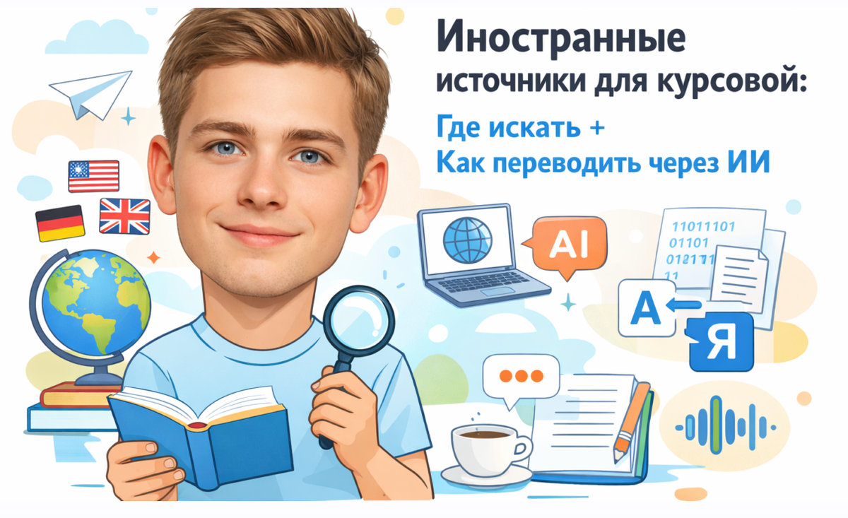 Результат: курсовая с 6-8 иностранными источниками, уникальность 87-92%, оформление по ГОСТ. Преподаватель видит, что ты работал с актуальными зарубежными исследованиями — это автоматически повышает оценку.