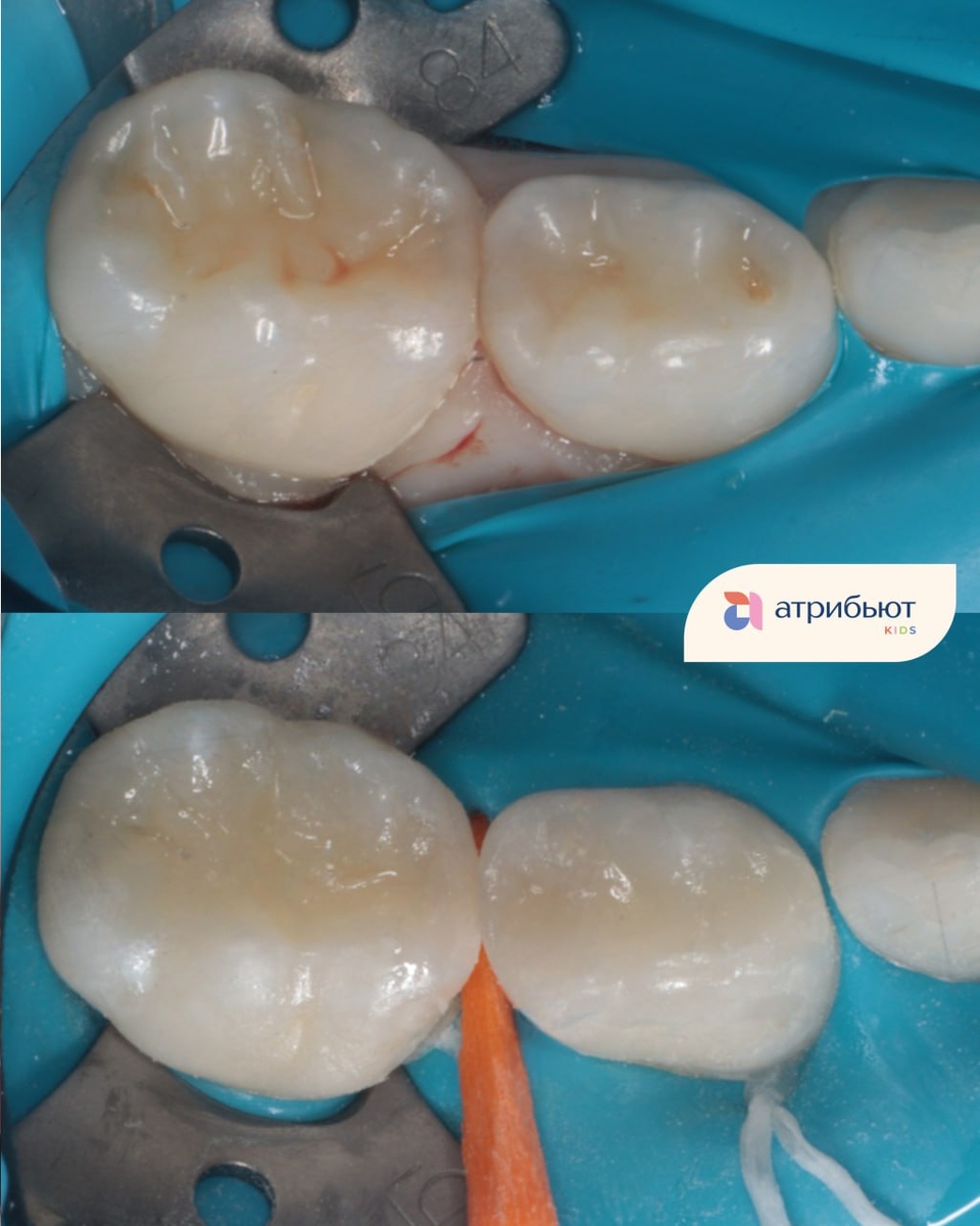 Во время осмотра у ребёнка были обнаружены кариозные полости на жевательных зубах. Внутри находились размягчённые ткани, но основание зубов оставалось плотным и здоровым. Реакции на холод и постукивание не было, что позволило провести лечение без осложнений. ✨ Процедура прошла под местной анестезией. Сначала зубы аккуратно очистили от налёта, затем изолировали их специальной защитой, чтобы лечение было точным и безопасным. 🦷 Все поражённые ткани были бережно удалены, после чего зубы восстановили современным пломбировочным материалом. Важно было не только убрать кариес, но и правильно восстановить форму зубов для комфортного жевания. В завершение проверили смыкание зубов и отполировали пломбы. ✅ Кариес устранён, зубы сохранены «живыми», ребёнок чувствует себя хорошо. При регулярных осмотрах результат будет стабильным. ⚕Автор кейса: Обухова Елизавета Михайловна — детский врач-стоматолог Atribeaute #atribeaute_kids 🌟Мы в МАКС