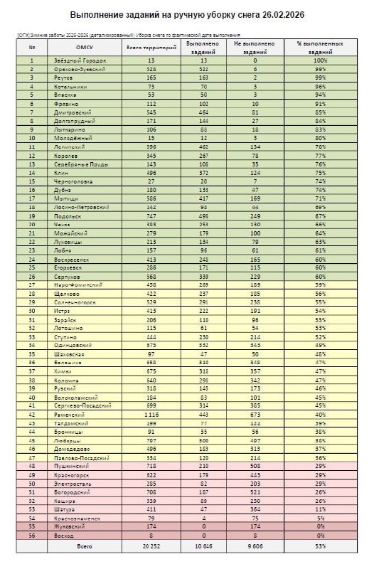 📊 Свежий официальный рейтинг муниципалитетов Подмосковья по уборке снега