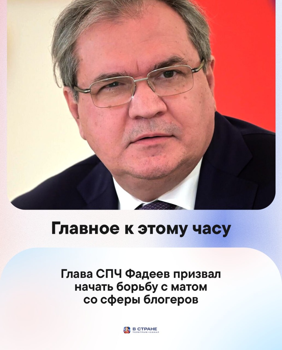 : 🔹Глава СПЧ Фадеев призвал начать борьбу с матом со сферы блогеров. 🔹РКН с начала года потребовал удалить более 35 тыс. материалов в Telegram. 🔹Возможность создания таблетки, заменяющей поход в спортзал, допустили в Минздраве. 🔹Новый ГОСТ для отелей появится в России. 🔹В России создали умную жвачку против кариеса. ✅ «В Стране» в MAX