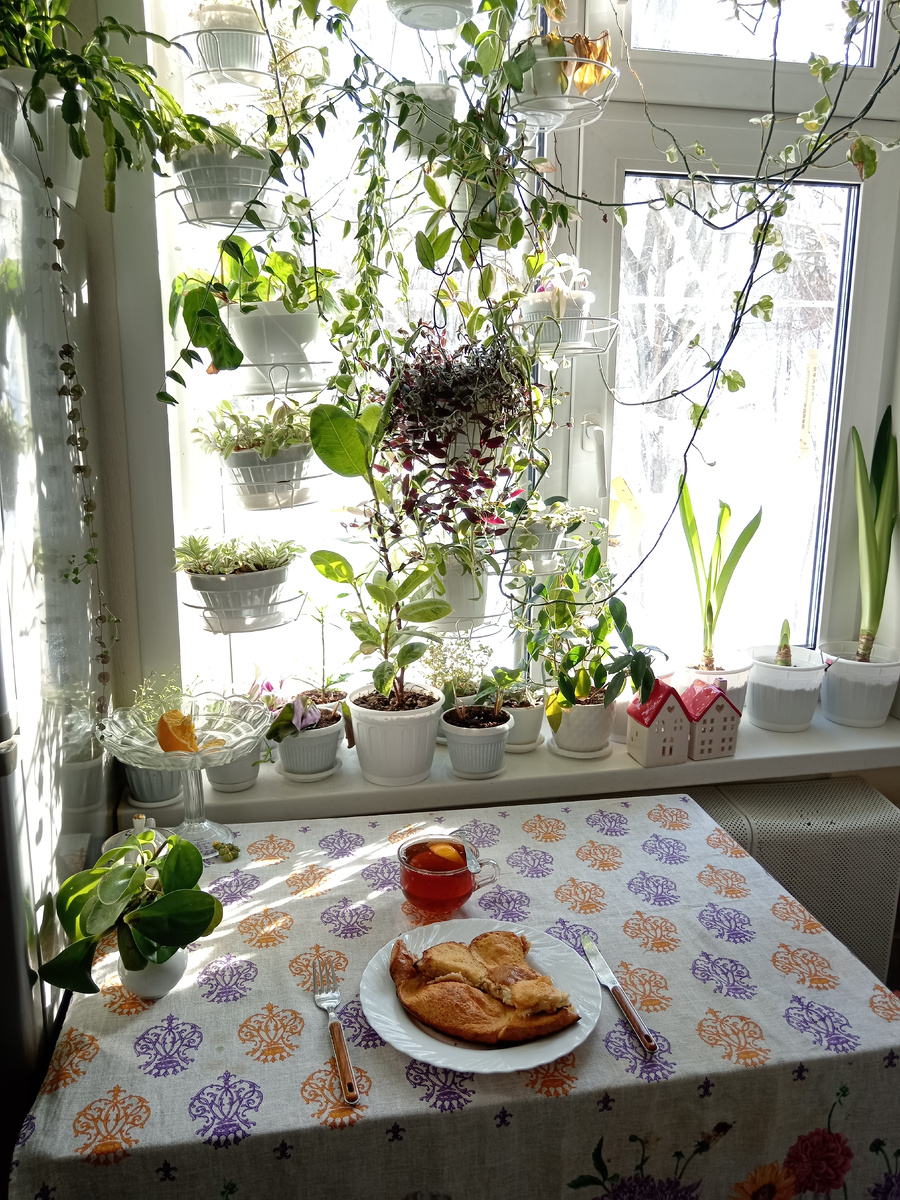 Отошла ко сну уже поздно ночью. Где-то в третьем часу успокоилась. Занималась изучением настройки пассивного дохода. Так что утром не слыхала, как сын ушёл к первому уроку. Сегодня их класс едет на выходные в профилакторий градообразующего предприятия. Не весь класс конечно же. Кто хотел, тот едет. Это примерно половина класса или 15 человек. Так что сегодня всего лишь три урока. До 10:00 учиться будут. 9:41. Яркое солнышко просвечивает сквозь мои тонкие веки. Будит меня, щекотливо скользя по носу. Аж чихнула. И проснулась. -22 С температура воздуха на улице. Насыпала подсолнечных семечек в птичью кормушку. Подогрела ещё тёплый белобокий чайник. Пила горячий кофе со сливками. На завтрак в духовке приготовила "Бедного рыцаря" или батон, запечённый в яйце с молоком. Уютный сладковатый запах наполнил всё пространство квартиры. Долго пила ароматный чай с кусочком апельсинки. После завтрака полила все домашние цветы с удобрением. Сейчас нужно усиленно ухаживать за своим зелёным царством. В