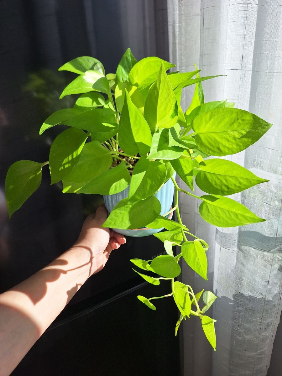 😁 Знакомьтесь, кто еще не знает, - это эпипремнум неон🌿 Реально неприхотливый чувак, который растит красивую листву даже в недостатке света. Он с самого начала растет без лампы, но, конечно, не прям в темноте - он больше года жил на полке напротив окна, осенью переселила чуть ближе. Главное не переливать и не слишком пересушивать, хотя он довольно терпелив к просушке, капризов за 2 года жизни у меня не обнаружено. Он мог бы быть гораздо пушистее, но как это я без продаж череночков обойдусь 😁 В этом году, кстати, решила от него отстать и не трогать - жду каскад зеленых веточек🥰 #комнатныерастения #комнатныерастениятамбов #эпипремнум