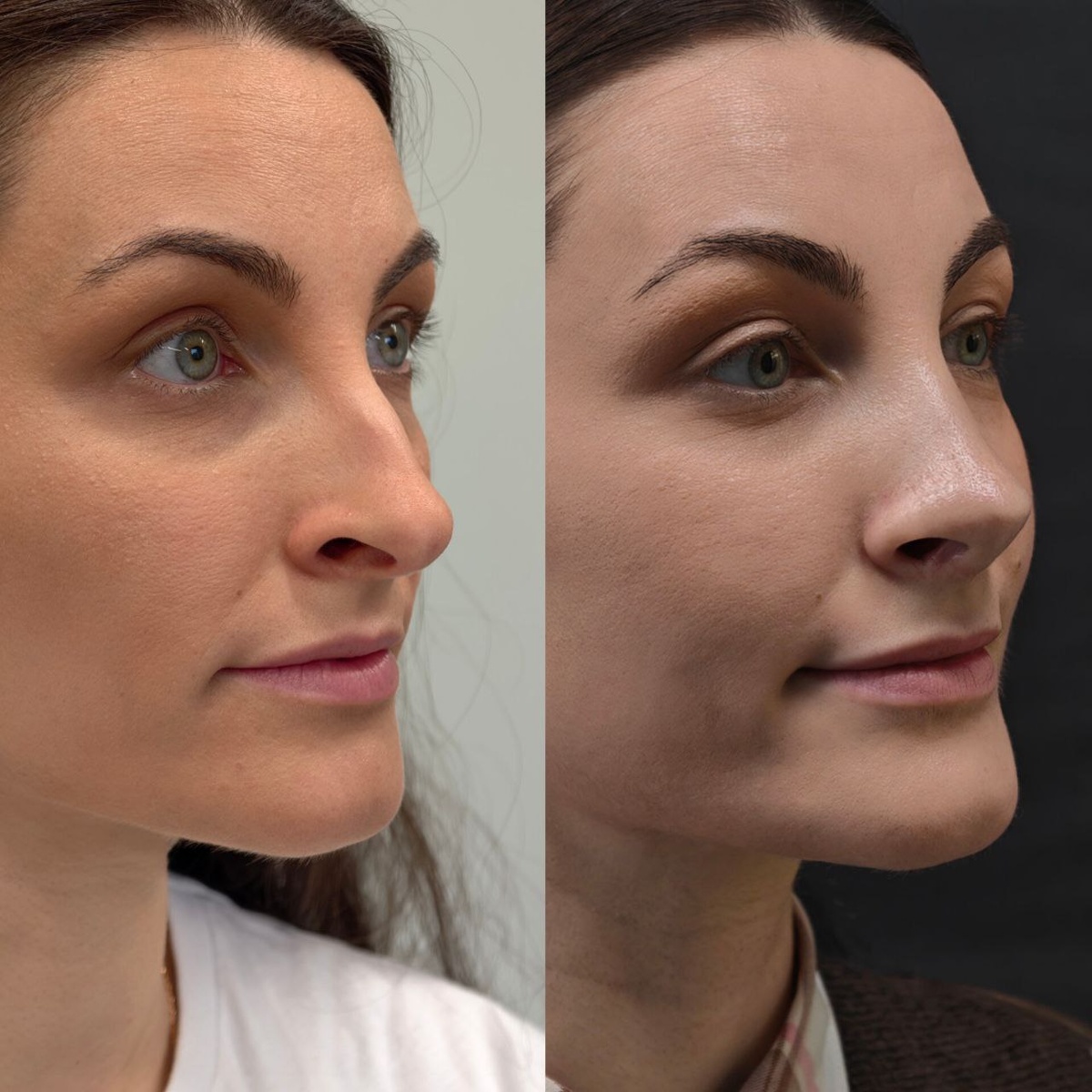 Травма в детстве , отсутствие носового дыхания. Вызовы операции: тонкая кожа, большая горбинка, выраженная девиация перегородки носа. Было долго и сложно, нос в течение недели совсем не дышал, болезненность кончика, корки. Еще впереди целый год восстановления. Но теперь точно все будет хорошо. Спасибо за возможность поделиться своей историей❤️