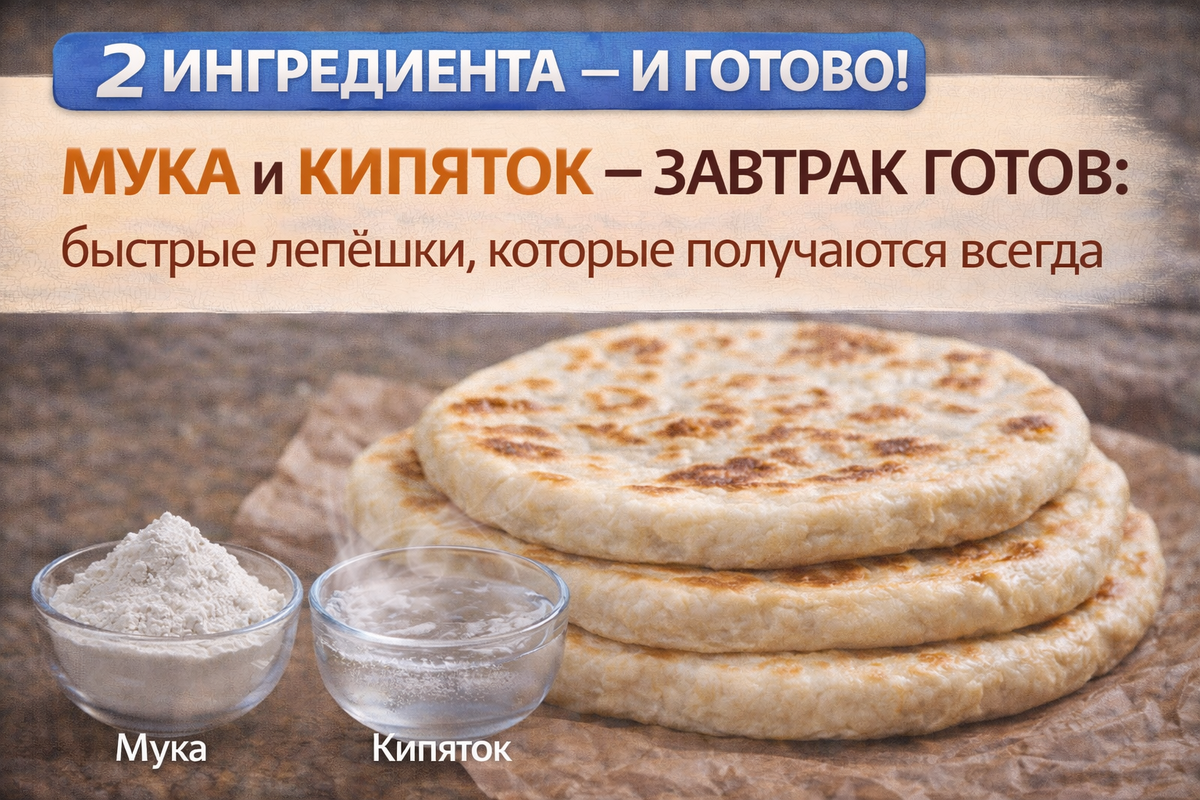 Мука и кипяток — завтрак готов: быстрые лепёшки, которые получаются всегда