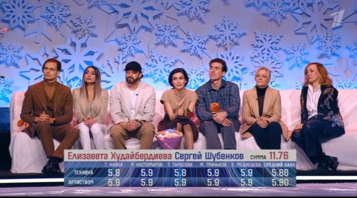 Александра Трусова и Иван Жвакин вообще как будто не у дел, как будто высокие баллы им априори никто ставить не собирается. В первом выпуске им поставили 11.82, а в последнем - 11.70. Тут даже и сказать нечего.