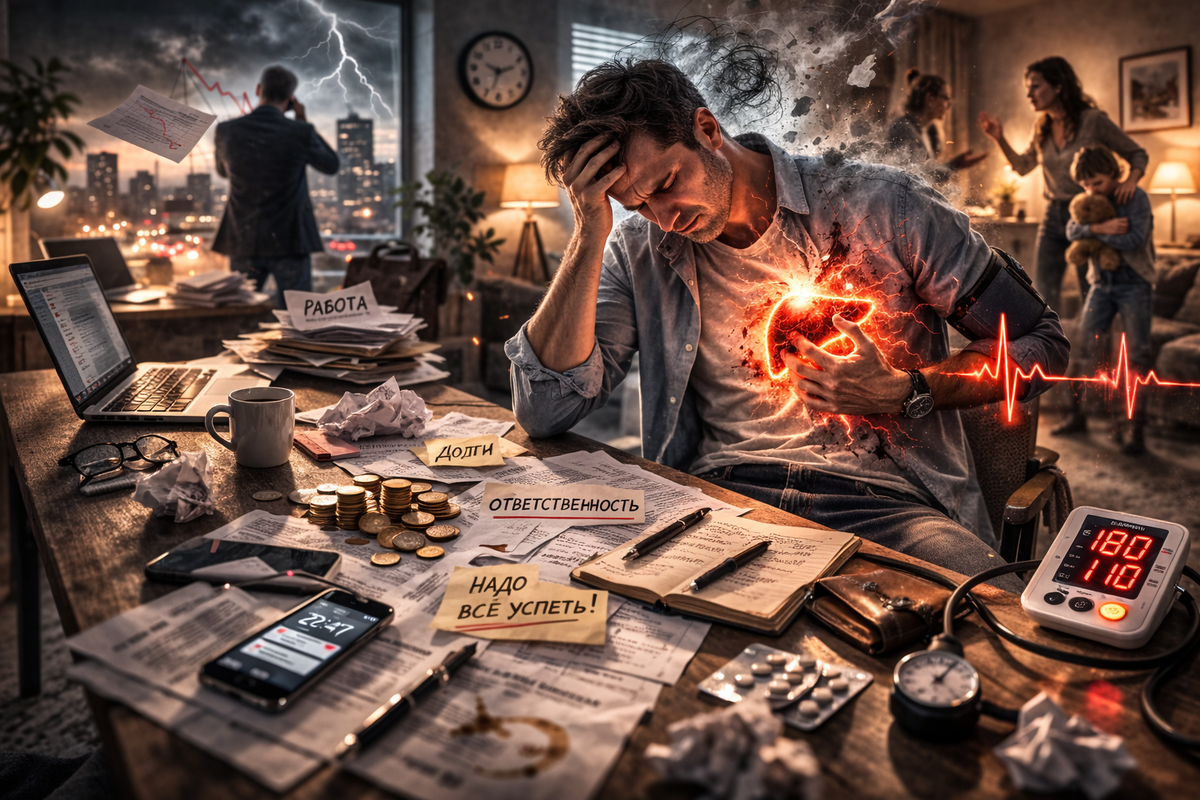 Он говорил: “Если я остановлюсь, всё рухнет”. И тело поверило. Начались тахикардия, давление, панические атаки ночью.