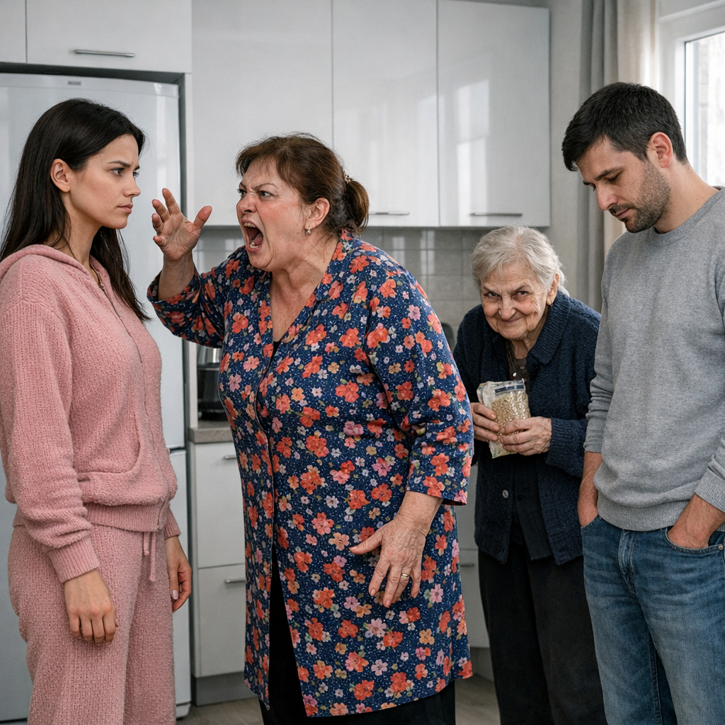 Карина поставила кружку на сушилку и вытерла руки полотенцем. Обернулась. Галина Яковлевна стояла посреди кухни в своём любимом байковом халате в мелкий цветочек — плотная, шумная, с поджатыми губами. За её спиной в дверях маячила бабка Прасковья. Мать Галины Яковлевны, восемьдесят лет, и каждый из этих восьмидесяти лет был прожит в состоянии хронического недовольства окружающим миром.