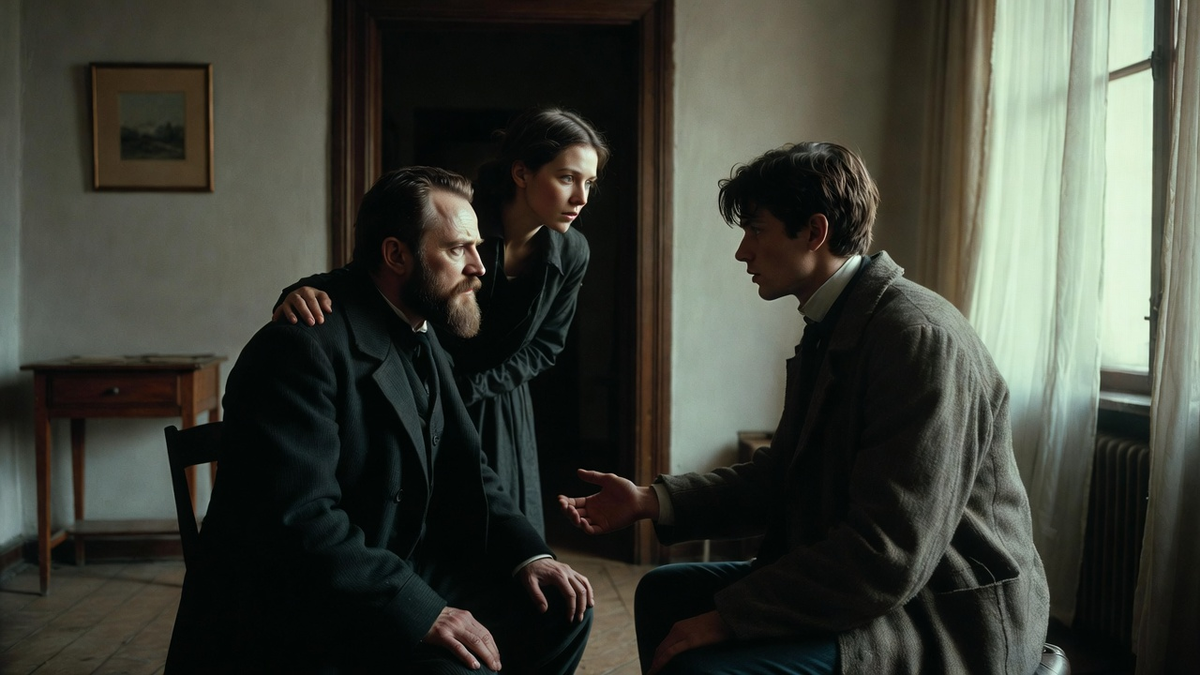 Весь вечер они просидели в маленькой гостиной над бюро. Анна Петровна, понимая, что разговор предстоит не для чужих ушей, ушла к соседке. Андрей Петрович деликатно удалился в свою комнату. Остались только Ариадна, Стрельников и Дмитрий. Дмитрий говорил долго, сбивчиво, словно боялся, что его прервут и не дадут договорить. Он рассказывал об Одессе, о маленькой комнатке у моря, о работе в порту, о тоске, которая душила его по ночам. О том, как следил издалека за петербургскими газетами, как узнал о её борьбе с Баженовым, как хотел броситься на помощь, но боялся только усугубить. — Я думал, что если вернусь, они снова начнут охоту, — говорил он, сжимая виски. — Баженов обещал, что оставит тебя в покое, если я исчезну. Я поверил. Я был глуп. — Ты не был глуп, — тихо сказала Ариадна. — Ты был сломлен. Как и я когда-то. — А потом, когда Баженова арестовали, я обрадовался. Думал, теперь можно вернуться. Но столько лет прошло... я боялся, что ты меня не примешь. Что у тебя новая жизнь. Я следи