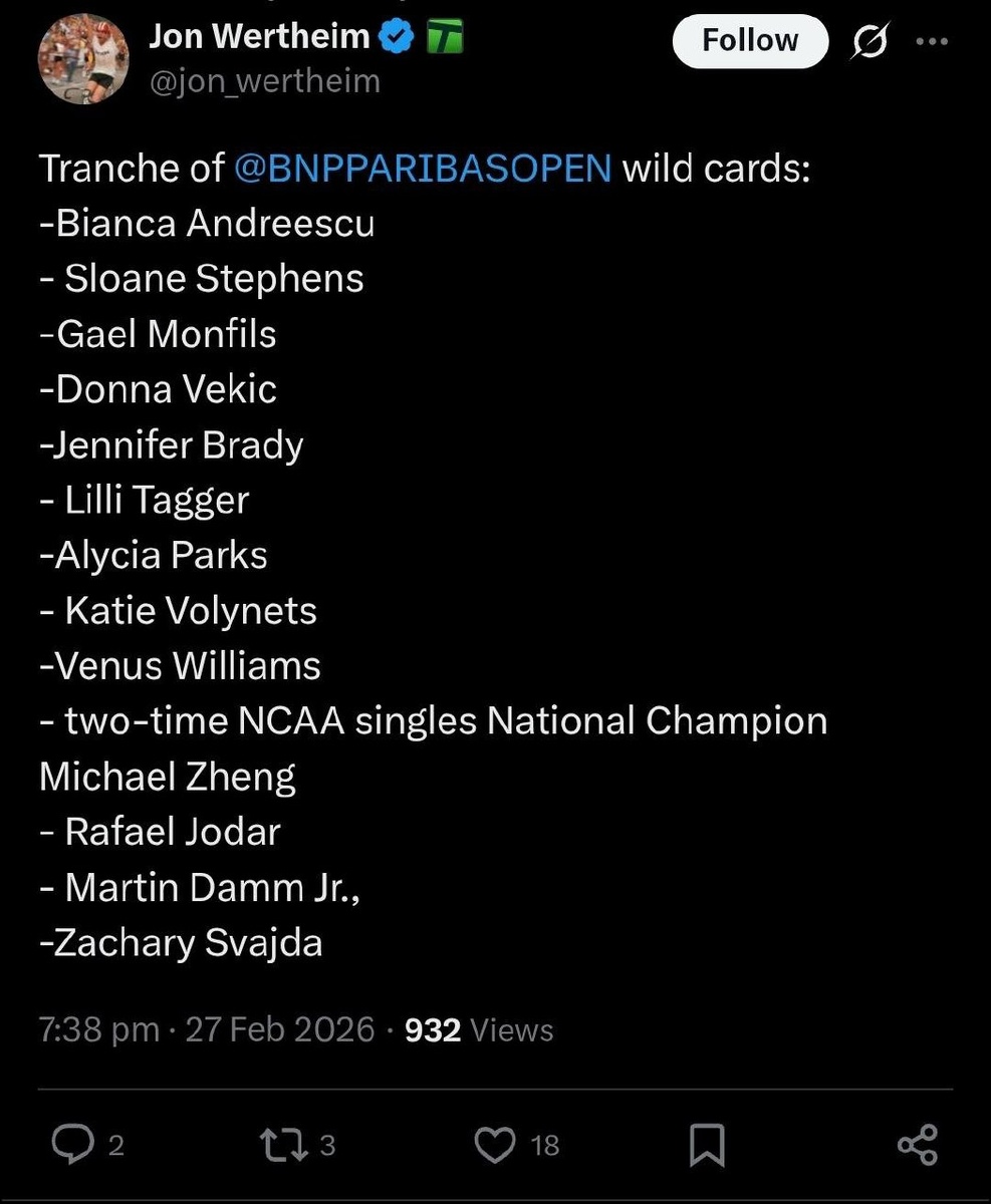 🎾 В основной сетке сыграют: - Бьянка Андрееску - Слоан Стивенс - Гаэль Монфис - Донна Векич - Дженнифер Брэди - Лили Тэггер - Алисия Паркс - Кэти Волынец - Винус Уильямс - Двукратный чемпион NCAA Майкл Чжэн - Рафаэль Джодар - Мартин Дамм мл. - Закари Свайда Подпишись на Эйс и точка