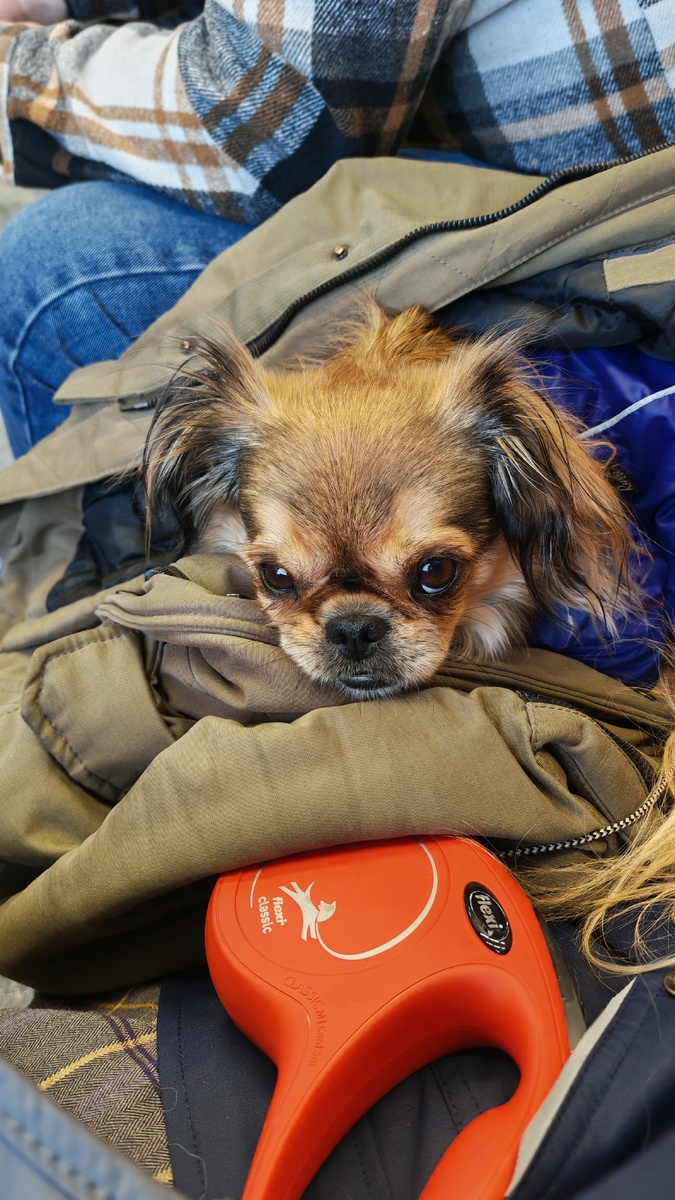 Погода сегодня позволила и мы таки поехали в Голицыно. Шуня согласилась ехать только на папиной куртке 🤭: