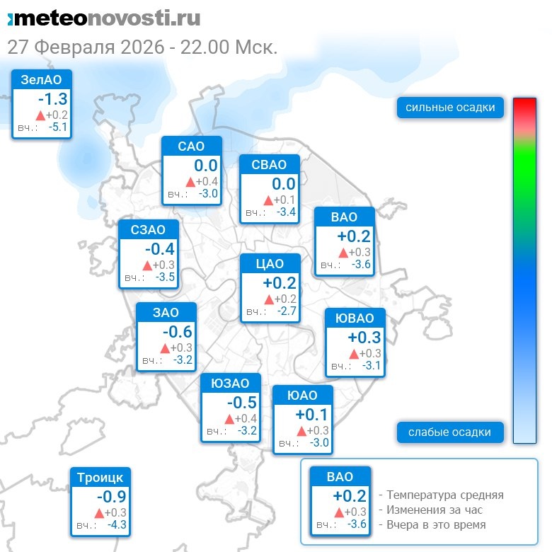 В 22:00 в Москве было от -1.8°C до +0.8°C, средняя температура -0.2°C #погода #Москва #зима #температура #27февраля #пятница