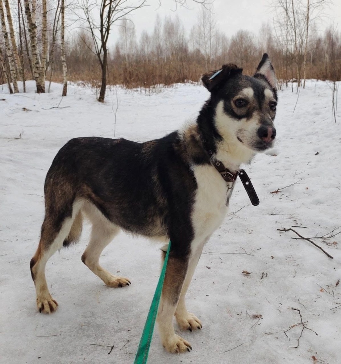 По поведению можно сказать - это спокойная собака, поводок сильно не тянет. Может немного испугаться чего- то надуманного на пути и остановиться в нерешительности ... А может наоборот-она в душе охотник и замирает, чтобы прислушаться и удостовериться, что всё хорошо и можно без опаски продолжать путь.....Боится дороги, поэтому волонтеры гуляют с ней лесными тропами. И этот барьер также преодолим, стоит только заняться ею вплотную.