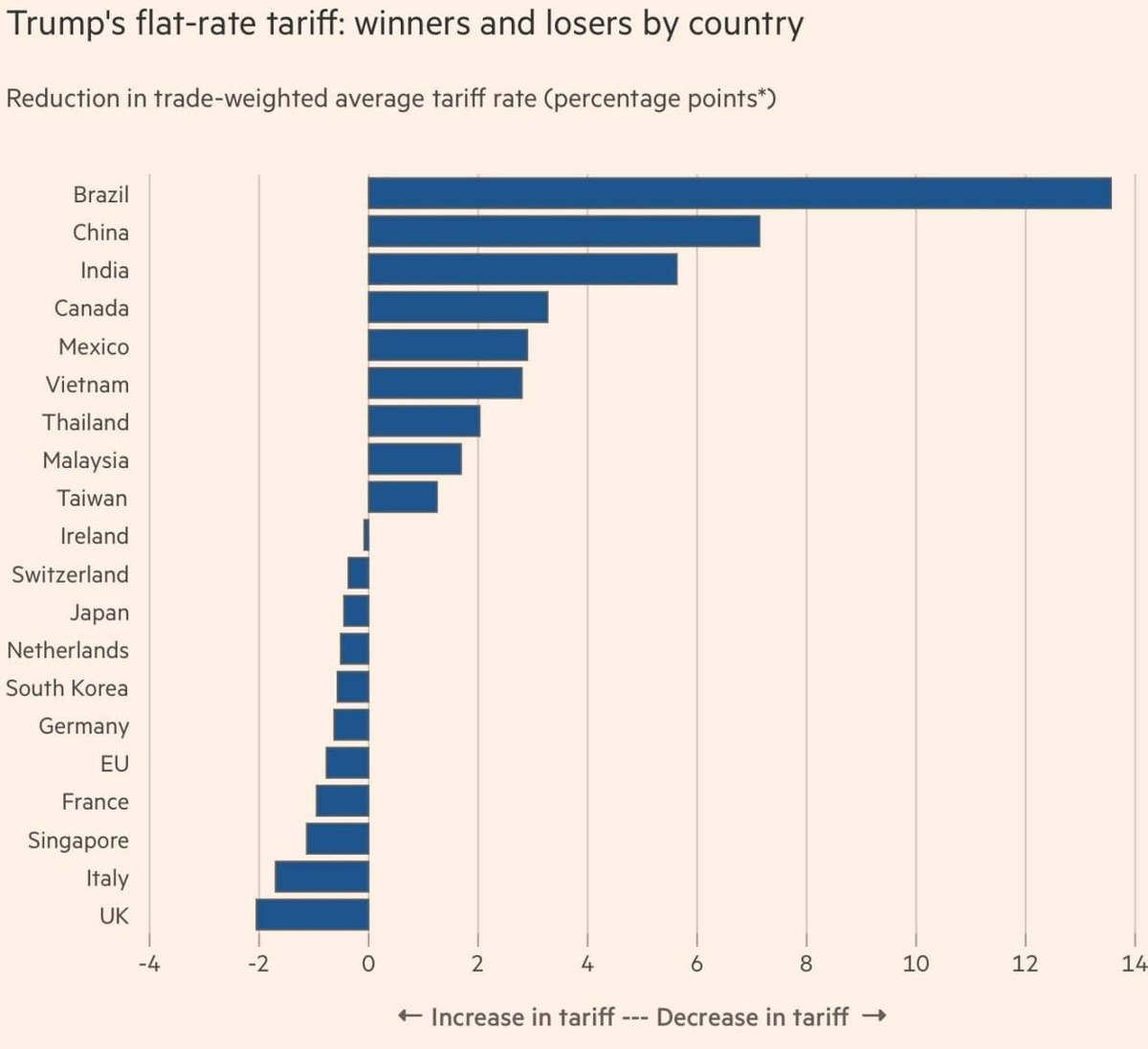 Новые тарифы Трампа привели к наибольшим уступкам для Бразилии, Китая и Индии