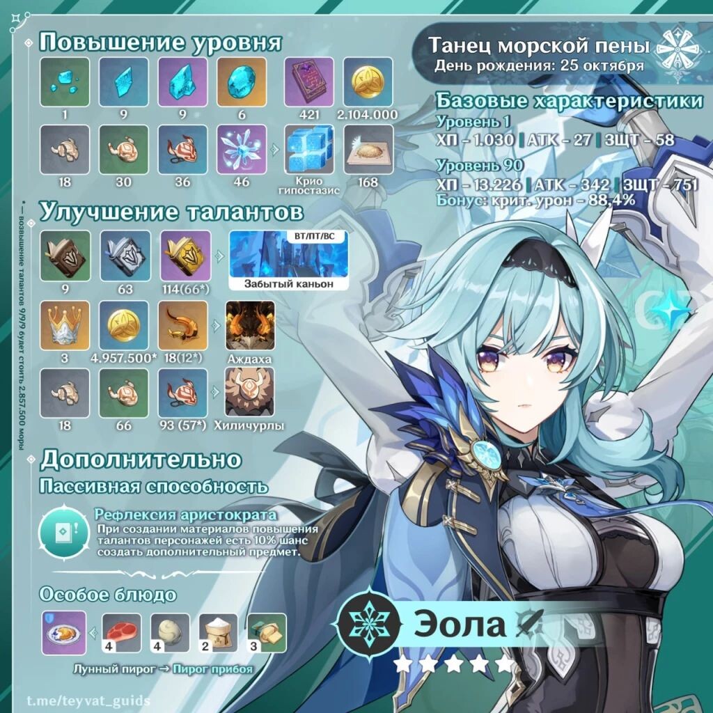 ㅤ❄ Понадобятся сила атаки и крит. показатели, а также небольшое количество восстановления энергии, так как Эоле важно активировать взрыв стихии каждую свою ротацию.
