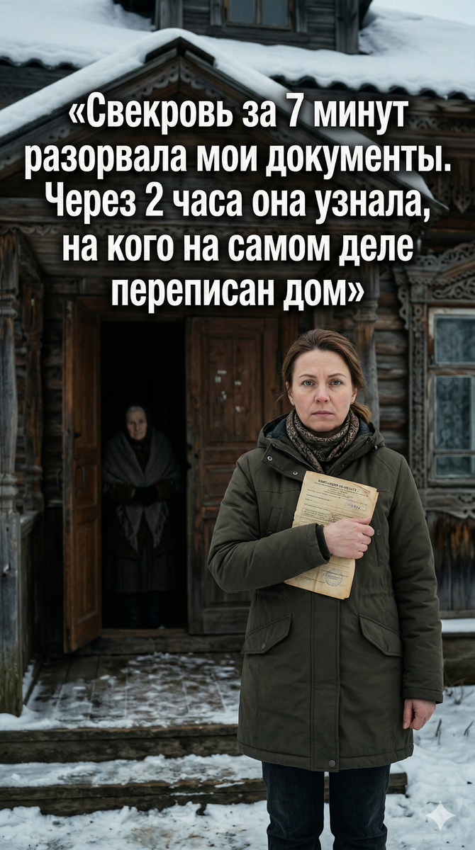 Я встала, прижимая к груди охапку разорванных бумаг. Среди них я видела уголок того самого документа. Светлана Захаровна думала, что уничтожила мою власть над этим домом. Она не знала, что юридически эта копия не стоила ничего, а оригинал лежал в банковской ячейке в Вологде уже три года.