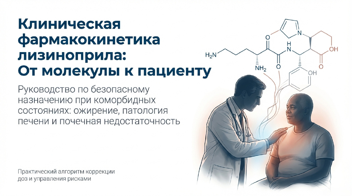 Оптимизация при ожирении Благодаря выраженной гидрофильности лизиноприл не депонируется в жировой ткани. В отличие от липофильных препаратов, он не создает риска отсроченной кумуляции. Клинически это означает, что расчет дозы у тучных пациентов должен производиться исходя из идеальной массы тела, а не общей, что позволяет избежать передозировки при сохранении целевого терапевтического окна.