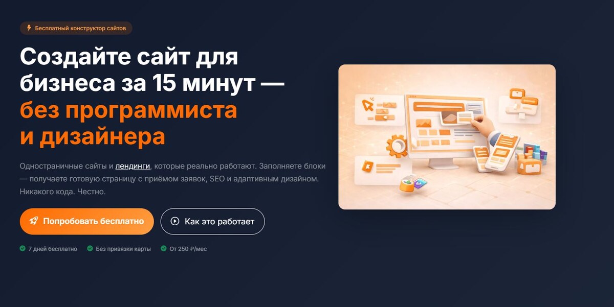 Слово «конструктор» у многих вызывает лёгкое отвращение. И понятно почему: шаблон из трёх блоков, баннер «Сделано на Wix» в подвале, и ощущение, что тебе продали детское Lego вместо нормального инструмента.