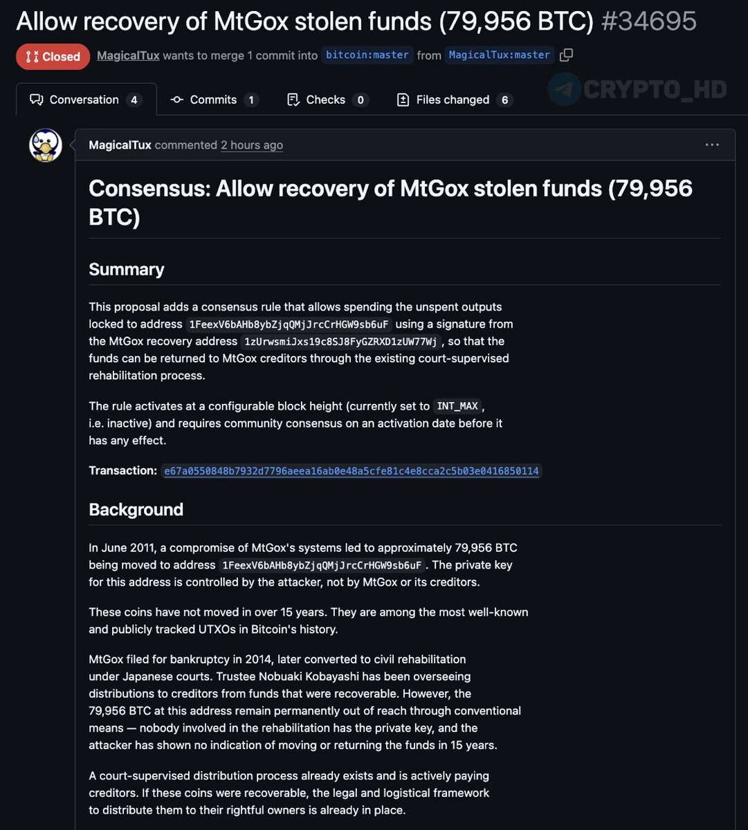 Речь идет о ~79,956 BTC, похищенных при взломе биржи в 2011 году. Монеты уже 15 лет хранятся на «спящем» адресе и по текущим ценам стоят более $5,2b. Идея — внести в протокол специальное изменение, которое позволит перевести средства с адреса взлома на адрес восстановления Mt․Gox и направить их кредиторам через действующую судебную процедуру. Что важно: • Эти монеты не входят в текущие выплаты кредиторам. • Изменение затронет только один конкретный адрес. • Для реализации потребуется координированное обновление сети. Crypto Headlines