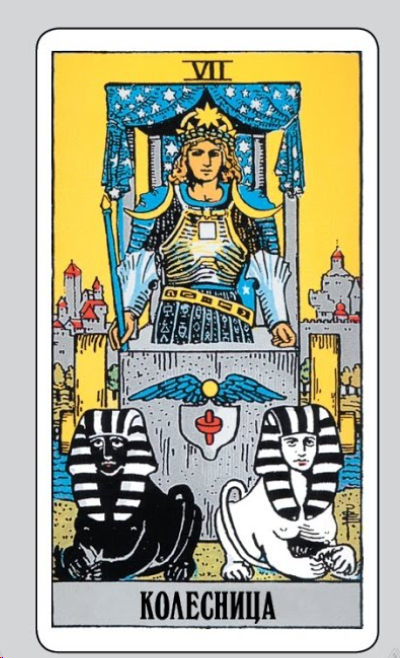 Колесница как "Триумф": Название карты неразрывно связано с древнеримской традицией триумфальных шествий. В ранних итальянских колодах карта так и называлась — "Триумф" (или "Трионфи" trionfi), что подчеркивало её главную тему — победу и торжество, а не войну как таковую .