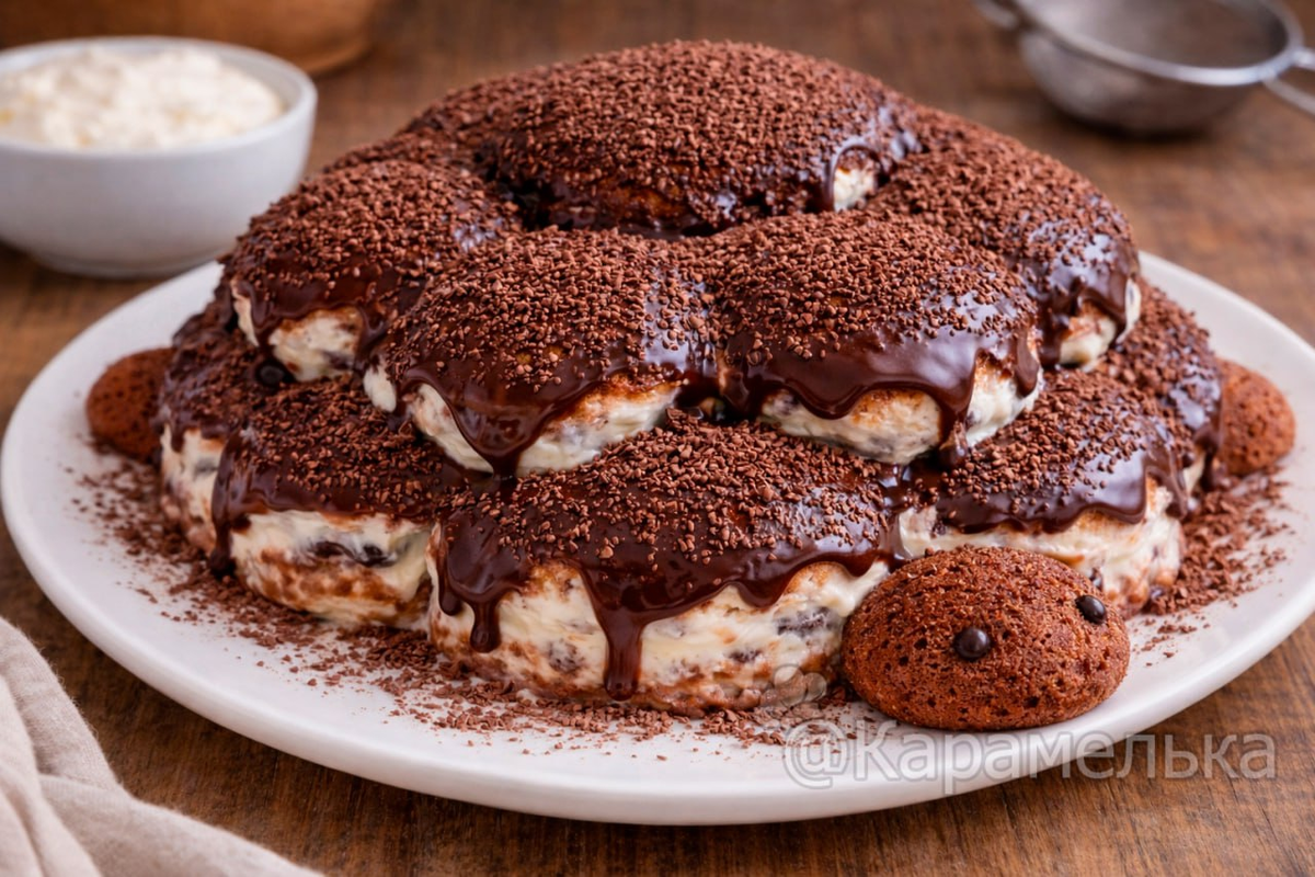 Здравствуйте, мои хорошие! Есть такие десерты, которые стоит только увидеть — и вы уже улыбаетесь. Именно таким для меня всегда был торт «Черепаха». Его приносили на дни рождения, ставили в центр стола, и дети тут же начинали разглядывать — где у неё лапки, где голова, а кому достанется самый «шоколадный» кусочек. В нём нет ничего вычурного, никаких сложных кремов или модных пропиток. Зато есть мягкие бисквитные лепёшки, нежный сметанный крем и ароматная шоколадная глазурь сверху. И самое главное — он домашний, тёплый и очень душевный. Готовится он проще, чем кажется на первый взгляд. А выглядит так, будто вы старались полдня. Хотя на самом деле всё довольно спокойно и без суеты. Ингредиенты Для теста: Для крема: Для глазури: Как приготовить: 1. Начинаем с теста. Яйца взбейте с сахаром до пышной светлой массы. Не торопитесь — 5–7 минут хорошей работы миксера делают бисквит воздушным и лёгким. Масса должна заметно увеличиться в объёме и стать кремовой. 2. Муку, какао и разрыхлитель про