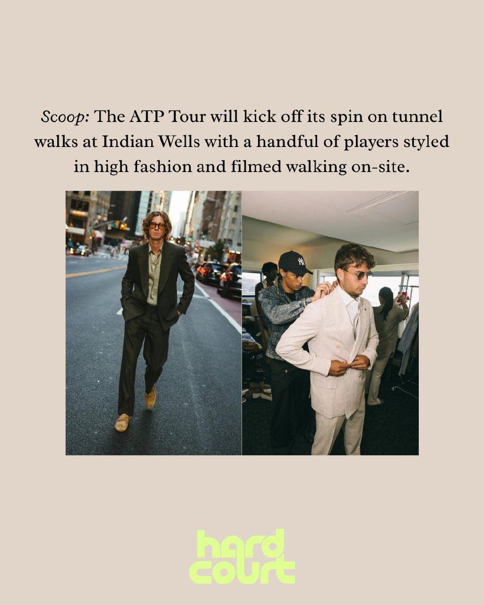 😎 ATP Tour запускает "проходки по туннелю" на турнире Indian Wells на следующей неделе. Несколько игроков будут одеты в высокую моду и сняты на видео во время прохода по территории. Это попытка представить теннисистов как звезд стиля, как в NBA и WNBA. 📸: @jessicaschiffer в X (ранее Twitter) Подпишись на Эйс и точка
