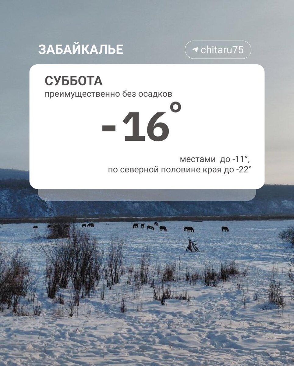 Ночью в Чите было до -32, по краю до -35, на севере региона — до -42. Ветер был восточный 3-8 м/с, днем в отдельных районах 8-13 м/с.